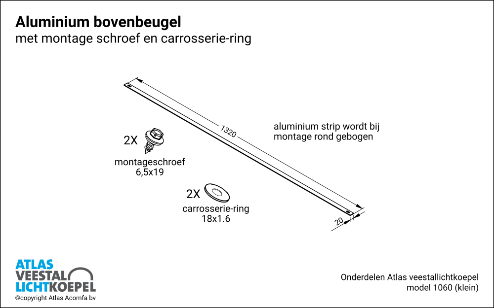 Model 1060 is de “kleine” beugel en Model 1380 de “grote” beugel. Op deze twee types zijn twee varianten gemaakt waarbij een opstaande rand op de voet wordt gelast. Door deze opstaande rand kunnen windgeleide platen worden gemonteerd aan de zijkanten van de veestallichtkoepels. Het gebruik van windgeleide platen zorgt voor minder wind die de stal kan binnen treden, wat een verbetering van comfort geeft. Atlas Acomfa heeft geen CAD-stukken in het assortiment opgenomen.