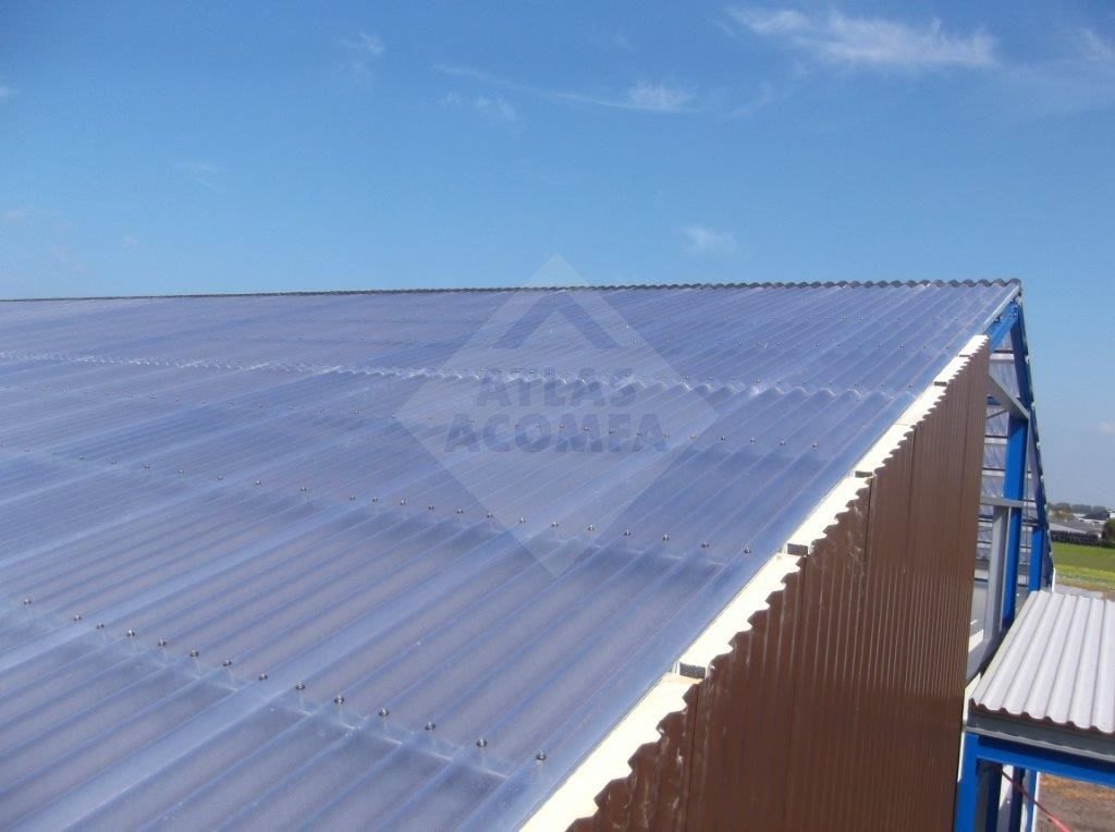 Voor deze loods in Noordwijkerhout vroeg men om heel veel daglicht. Hier zijn de golfplaten 177/51 3W geadviseerd.