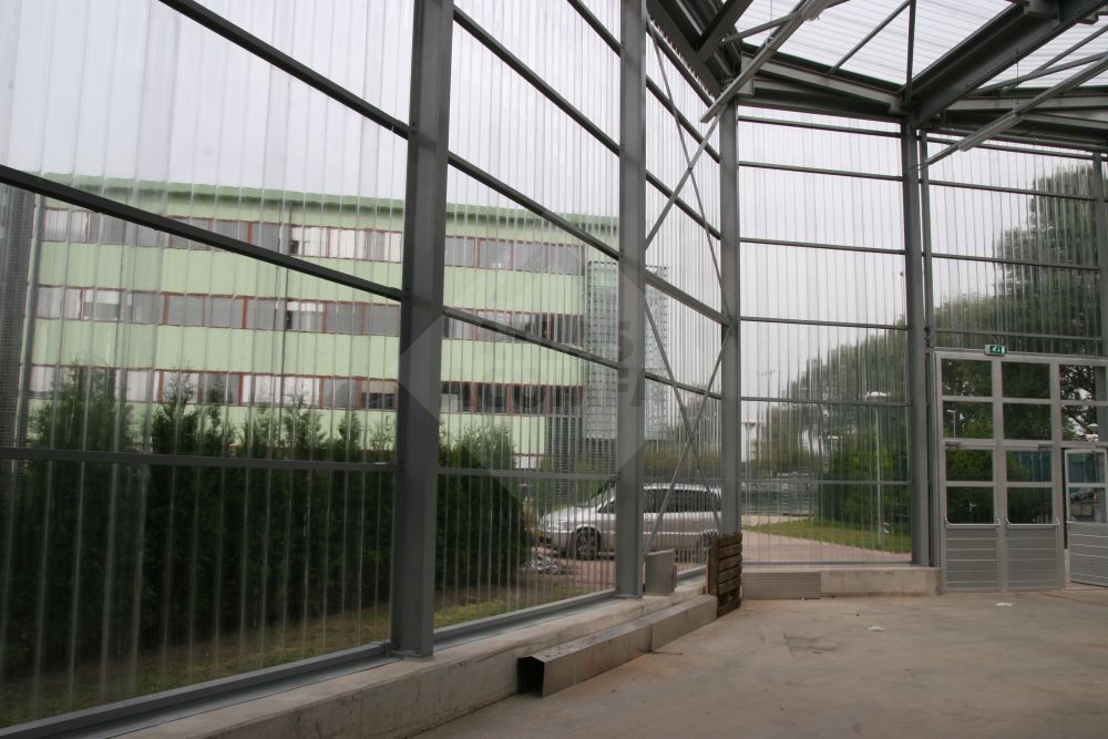 Op de vraag vanuit schaatsbaan Haarlem om te kunnen voldoen aan een duurzame, lichtdoorlatende en constructief lichte oplossing voor een grote overkapping tussen het verenigingsgebouw en de schaatsbaan, heeft Atlas Acomfa enkelwandig polycarbonaat 177/51 glashelder met UV-bescherming voorgesteld.